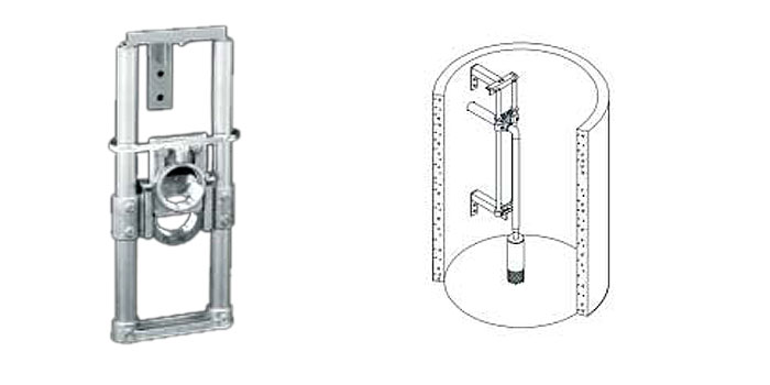 EPG Guide Rails, built from SCH40 stainless steel pipe, are available in lengths up to 20'. For deeper settings, EPG intermediate stand off brackets can be used every 10' to 15'. The deepest setting we have on record is 50'.